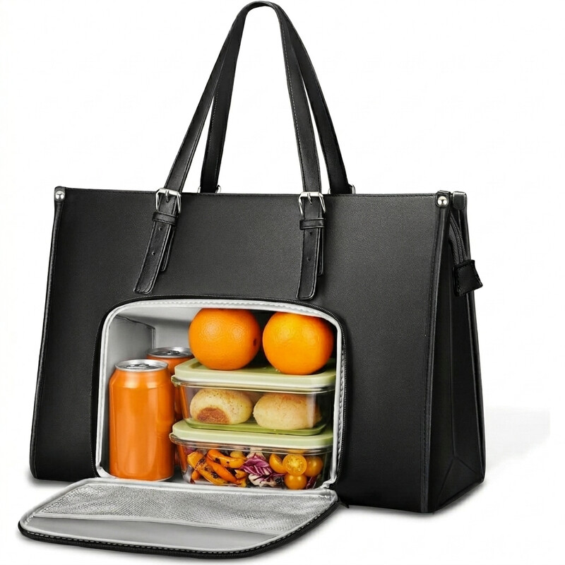 MATEIN Sac à dos pour ordinateur pour femme, compartiment isotherme pour déjeuner, 15,6 pouces, grand format, imperméable, en cuir, pour travail et école, noire, promotion Nouvel An, idée cadeau top