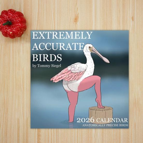 Yousheng 2026 Veggkalender Morsomme Fugler Vegghengt Kalender Jan. til des. 2026 12-måneders planlegger Nyhet Jule-gagsgave White Elephant-gave Rosa