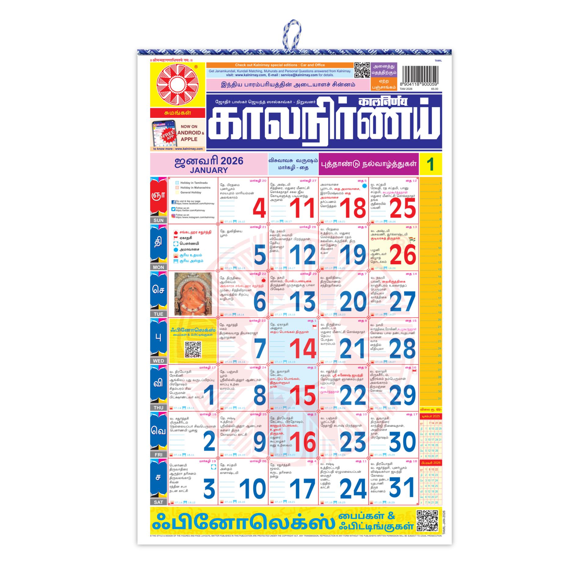 Calendrier Mural Utile Kalnirnay 2026, Calendrier Mural Mensuel Tamil avec Fêtes Indiennes, QTE - 1