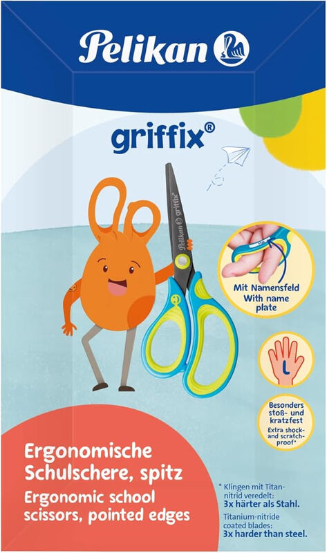 Pelikan Herlitz 820592 griffix Schulschere für Linkshänder mit Spitze, Neonfrisches Blau, 1er-Pack