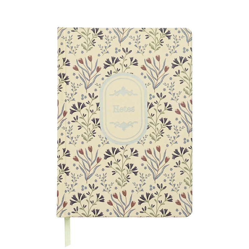 Jubiluu A5 Elegant Fabric Hardcover Lined Notebook - 96 Sheets (100g offset paper), Bookmark & Elastic Band - Classic Cream Ruled Journal for Writing, School, Office, and Gifts-Vintage Garden