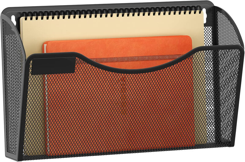 EasyPAG Wand-Ordnerhalter aus Metallgitter, A4 Querformat, 1 Fach, mit Namensschild, Schwarz, Neujahrs-Angebot, Top-Geschenkideen