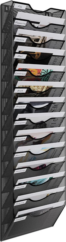 EasyPAG Wand-A4-Metallgitter-File-Organizer mit 14 Fächern, Schwarz, Neujahr-Action, Top-Geschenkideen