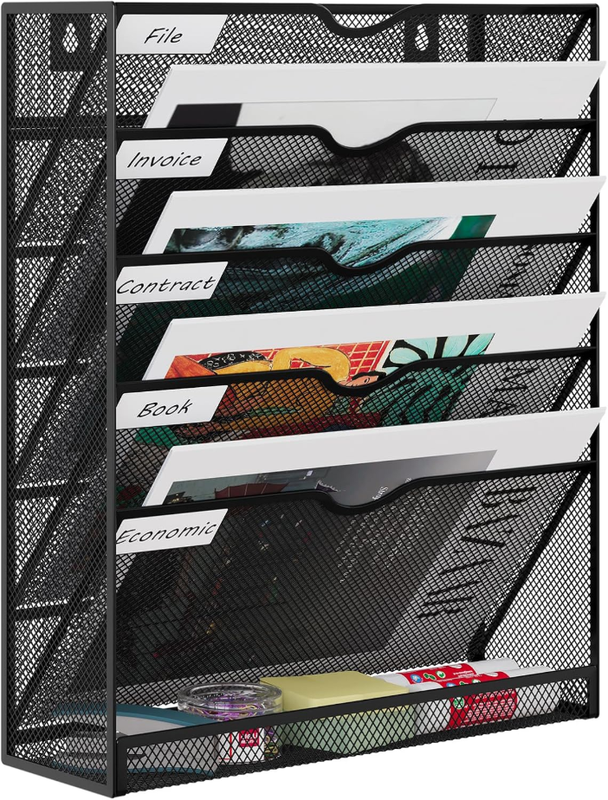 EasyPAG 6-stufiger A4-Wand-Aktenhalter aus Metallgitter, schwarz, Neujahr-Action, Top-Geschenkideen