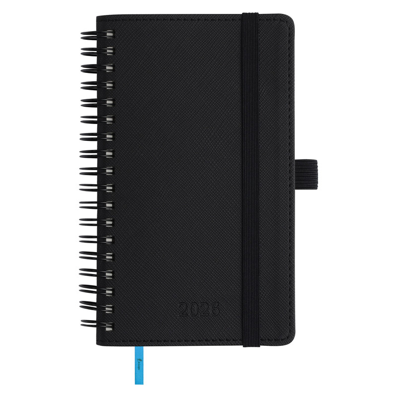 IN-LUXPRO Spiralblock-Datenbank A6 (16,4 x 9,6 cm), Woche auf zwei Seiten, 6 Sprachvarianten, Wochen- & Monatsplanung mit Monats-Tabs, Tasche, Ausgaben- & Notizseiten, 100 g/m² Papier, PU-Leder-Softcover, Schwarz, Neujahr-Angebot, Top-Geschenkideen