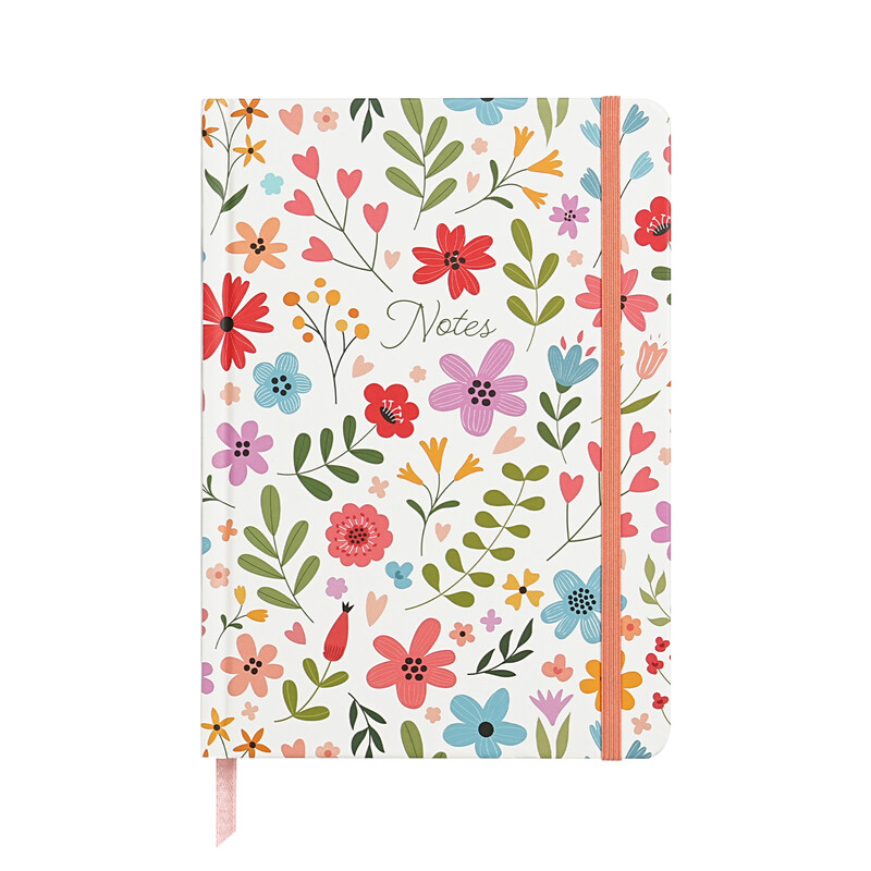 Jubiluu A5 Textured Hardcover Lined Notebook - 96 Sheets (100g offset paper), Bookmark & Elastic Band - Classic Cream Ruled Journal for Writing, School, Office, and Gifts-Spring Meadow