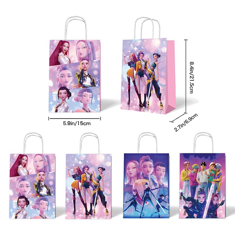 12 Pièces Kpop Thème Chasseurs de Démons Ensemble Sac Cadeau Anime Fête d'Anniversaire d'Enfants Sac d'Emballage Biscuit Bonbon Fournitures de Rangeme