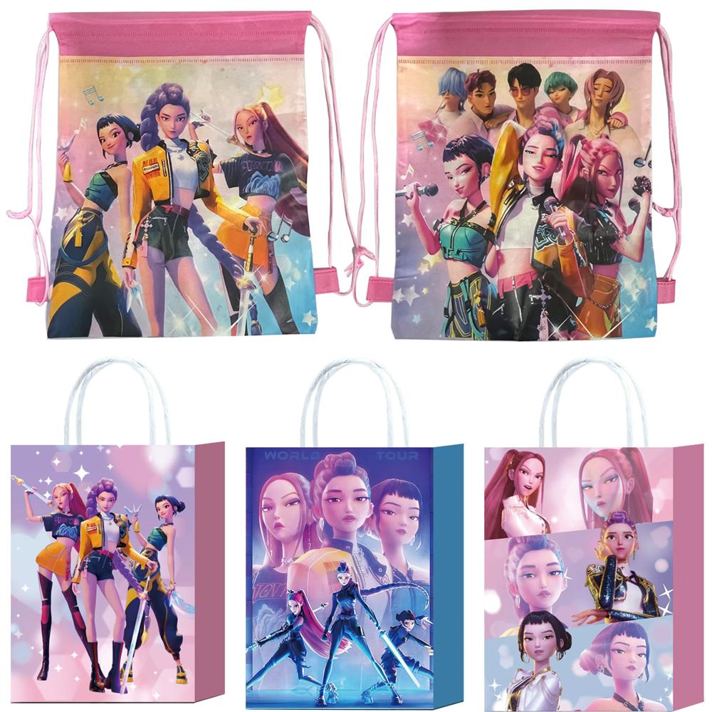 Włókninowy worek ze sznurkiem Torba na prezenty na przyjęcie urodzinowe dla dziewczynek Torba do przechowywania K-pop Demon Hunter z motywem zespołu F