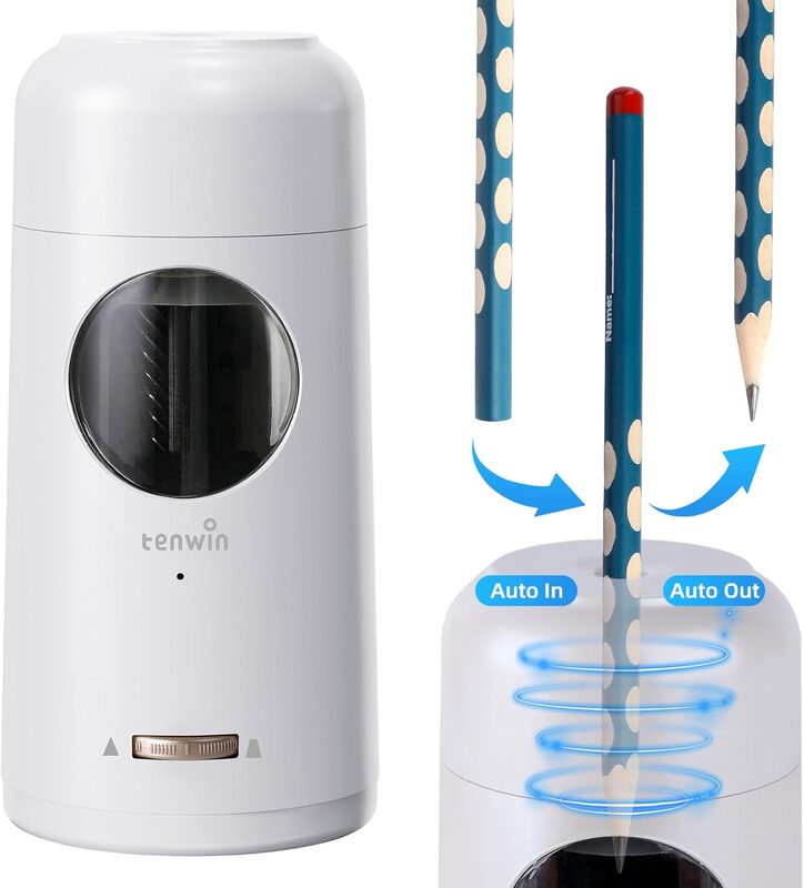 tenwin Fully Automatic Electric Pencil Sharpener, Rechargeable Pencil Sharpener with Container for 7-11.5mm Pencils & Colored Pencils, Fast Sharpening, Portable and Safe for Home, Office, School Use (White)