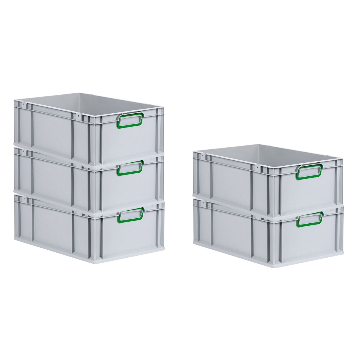 PROREGAL 5x Eurobox NextGen Color | HxBxT 22x40x60cm | 44 Liter | Griffe grün geschlossen | Verstärkter Boden | Eurobehälter