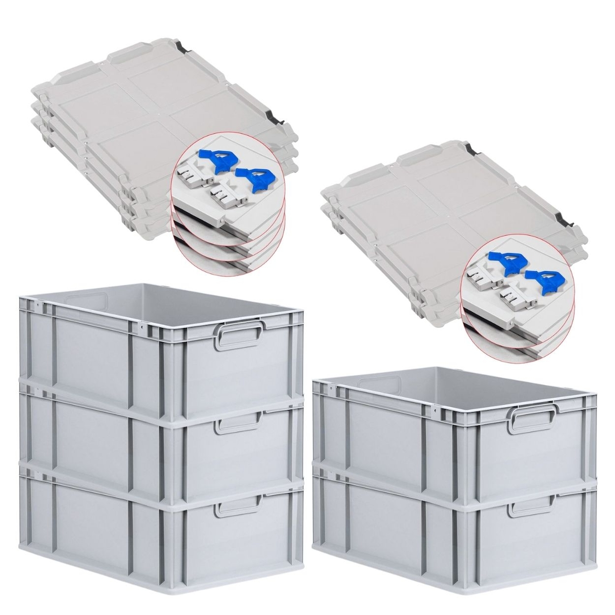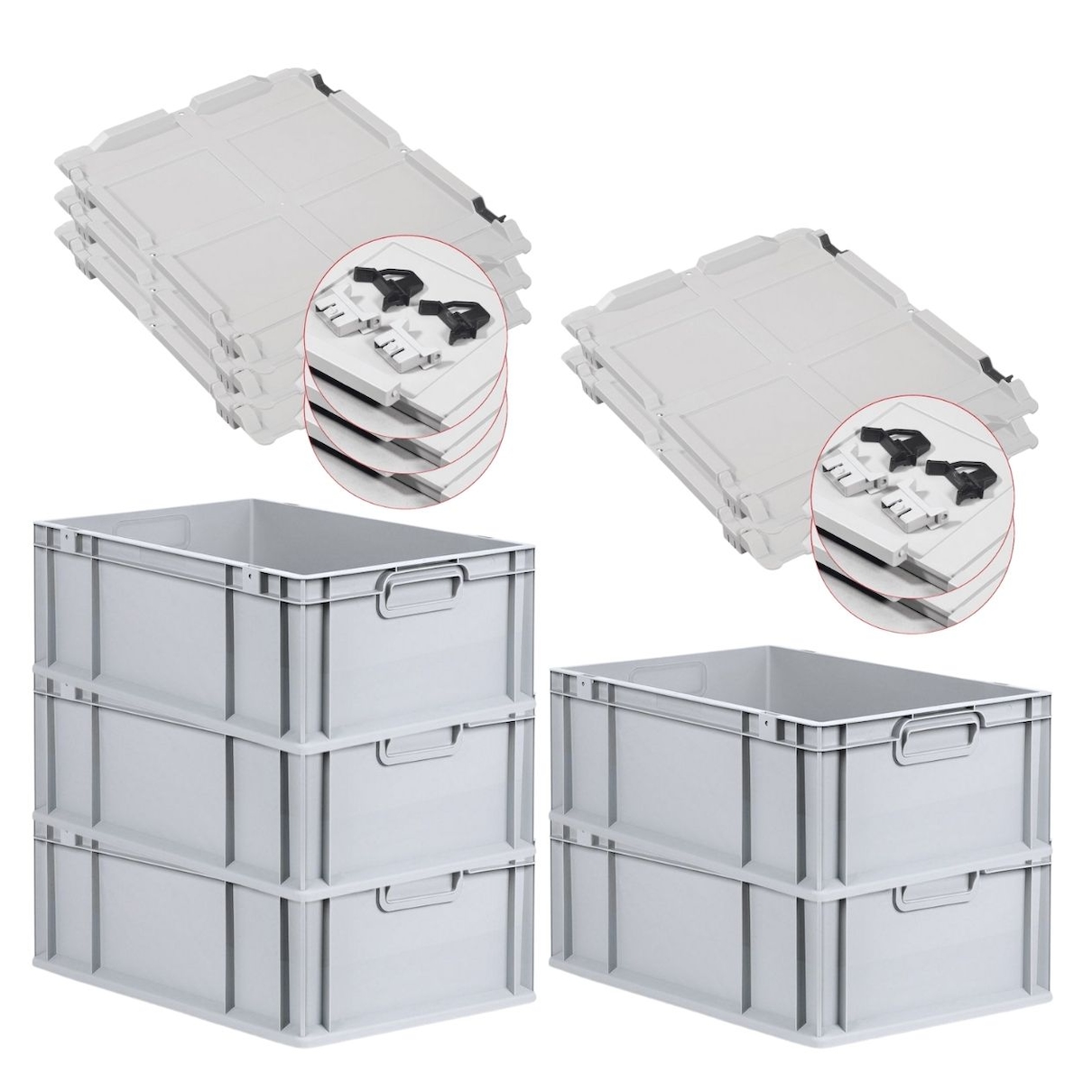 PROREGAL 5x Eurobox NextGen Grip mit Scharnierdeckel & schwarzen Verschlüssen | HxBxT 22x40x60cm | 44 Liter | Griffe geschlossen | Verstärkter Boden