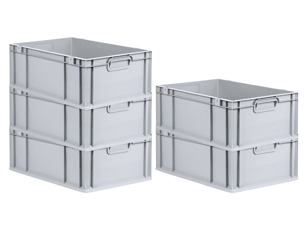 PROREGAL 5x Eurobox NextGen Grip | HxBxT 22x40x60cm | 44 Liter | Griffe geschlossen | Verstärkter Boden | Eurobehälter
