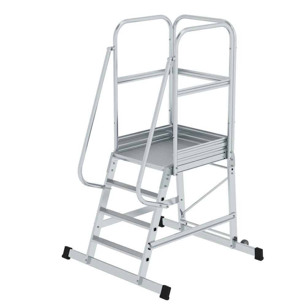 Munk Günzburger Steigtechnik MUNK Podestleiter mit Rollen und Griff Aluminium geriffelt 4 Stufen