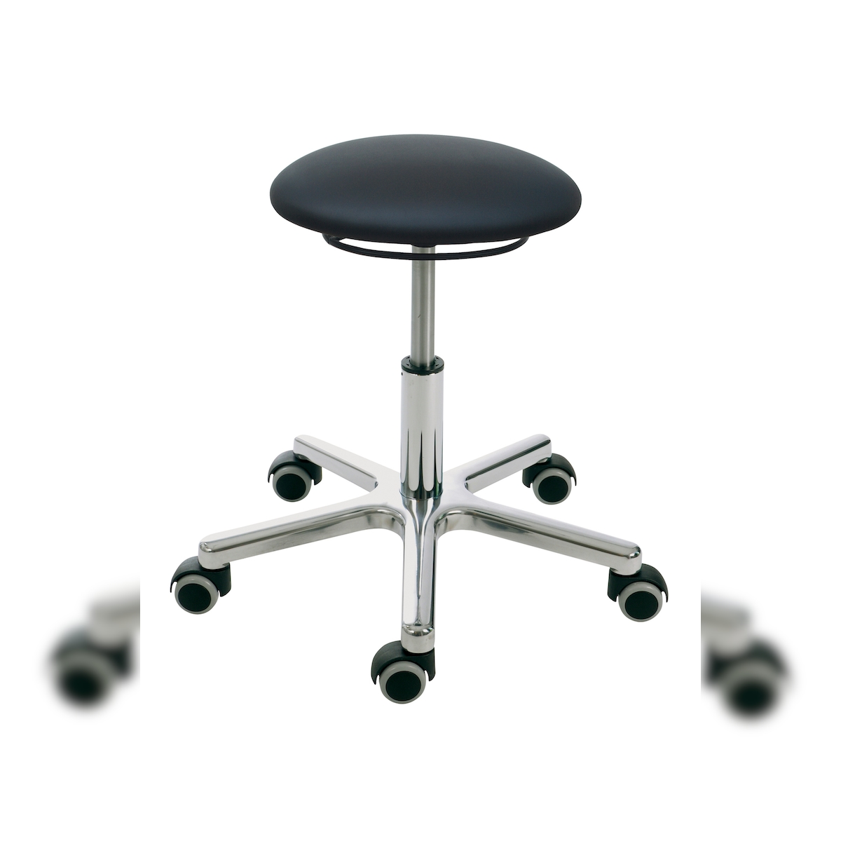PROREGAL Drehhocker Atlanta, Sitzhöhe 55-73cm, Tragfähigkeit 110kg, Kunstleder-Sitz, Aluminium-Fußkreuz, Rollen, Ringauslösung, Schwarz