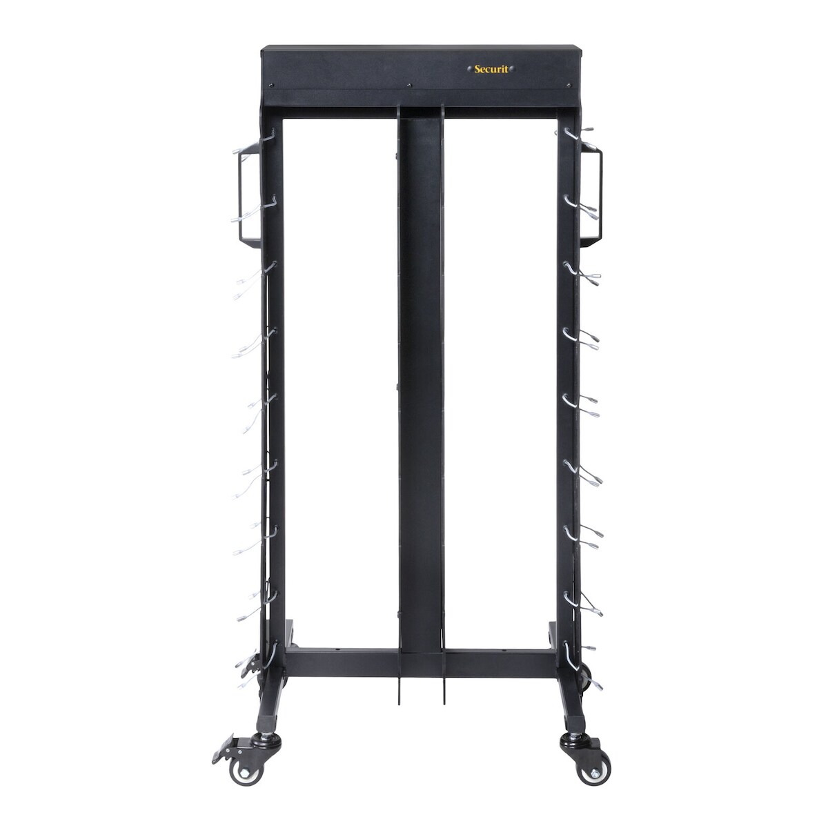 Securit® Ladewagen für 36 LED‑Tischlampen – Schwarz – Magnetanschluss – Aluminium – 4 Rollen