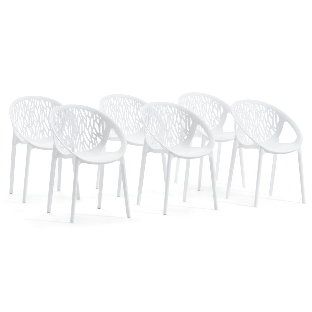 RATTATAN Set mit 6 stapelbaren Stühlen aus Polypropylen mit Glasfaser für Außenbereich und Garten, Bar, Restaurant oder Küche, modernes Design – Lara–Weiß