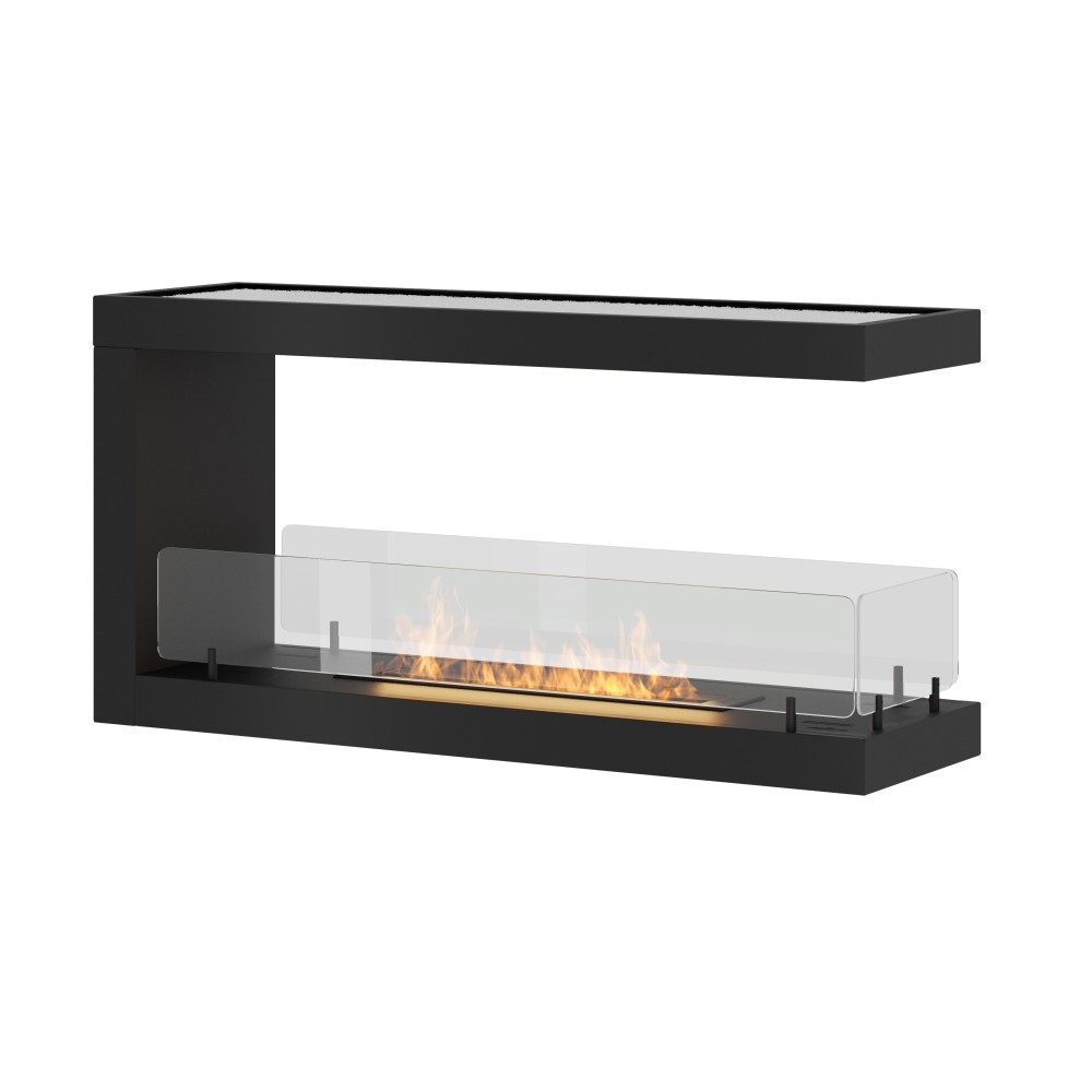 OutInFire CORN 90 – Eingebauter Bioethanol-Eckkamin mit Schutzglas. Rechte Öffnung – mit Glas