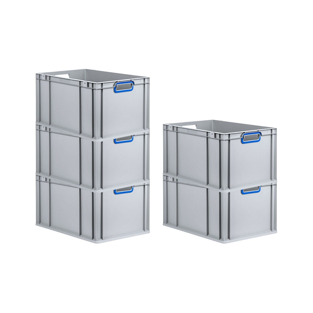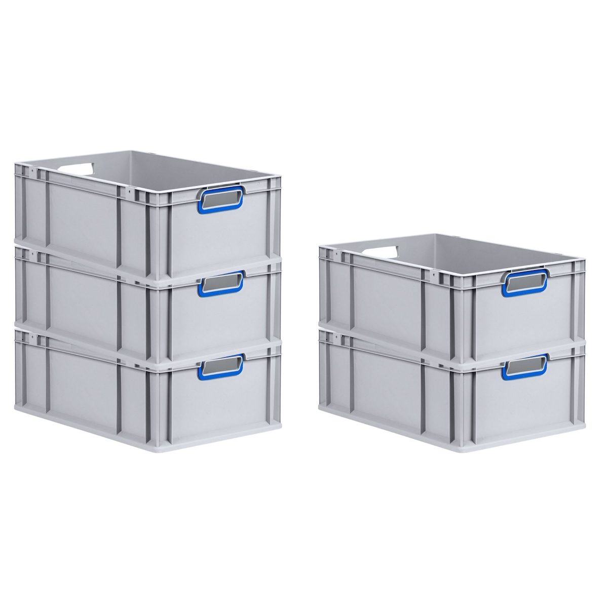 PROREGAL 5x Eurobox NextGen Grip | HxBxT 17x40x60cm | 34 Liter | Griffe offen | Glatter Boden | Eurobehälter