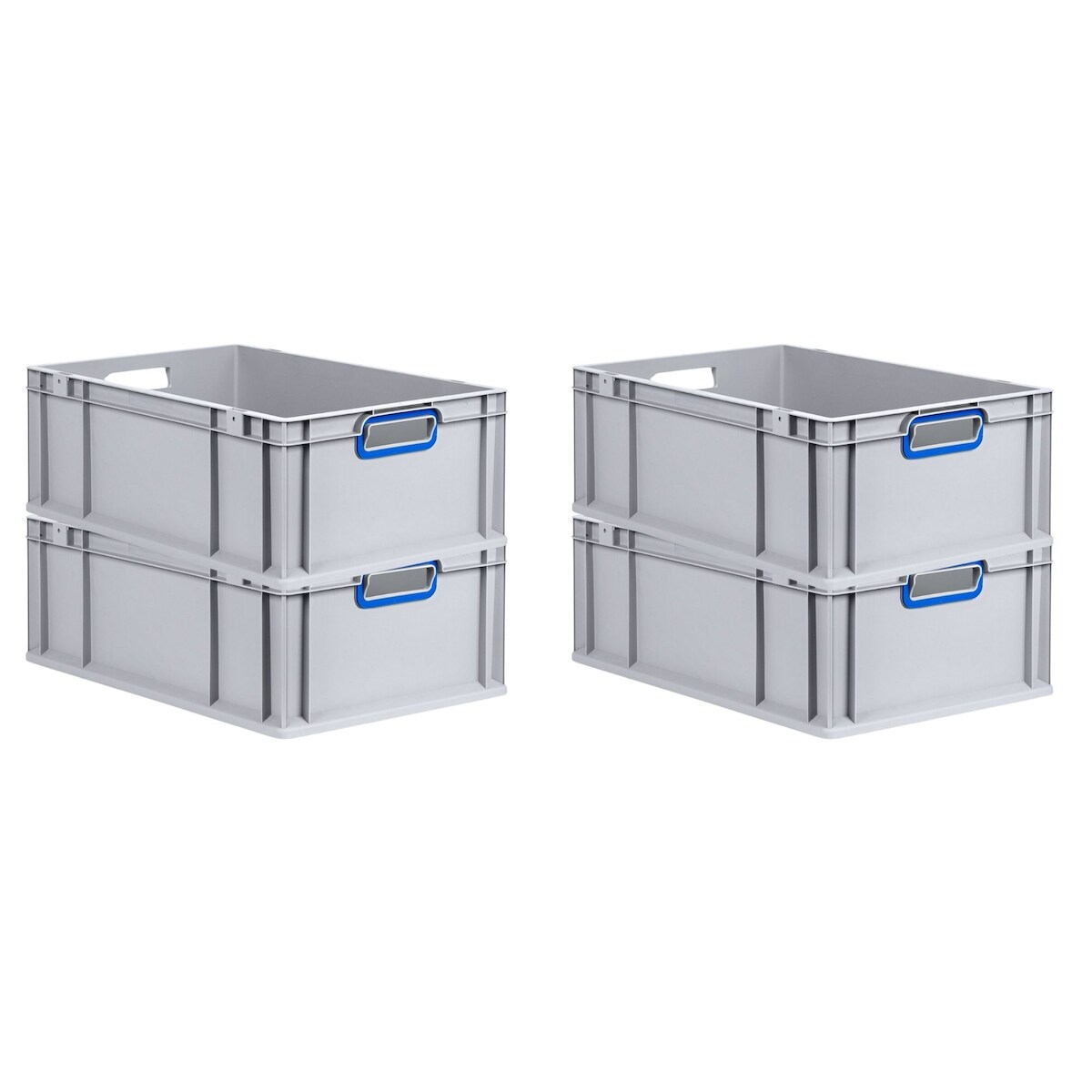 PROREGAL 4x Eurobox NextGen Color | HxBxT 22x40x60cm | 44 Liter | Griffe blau offen | Verstärkter Boden | Eurobehälter