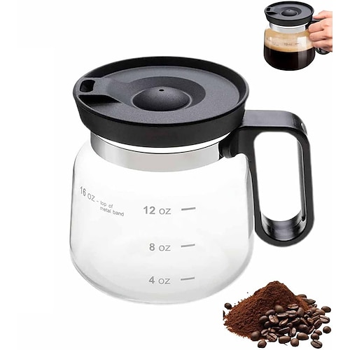 Tazza da caffè in vetro da 16 once, stile caffettiera, tazza da caffè in vetro trasparente con coperchio da viaggio tipo cannuccia per caffè caldo, tè caldo, cioccolata calda