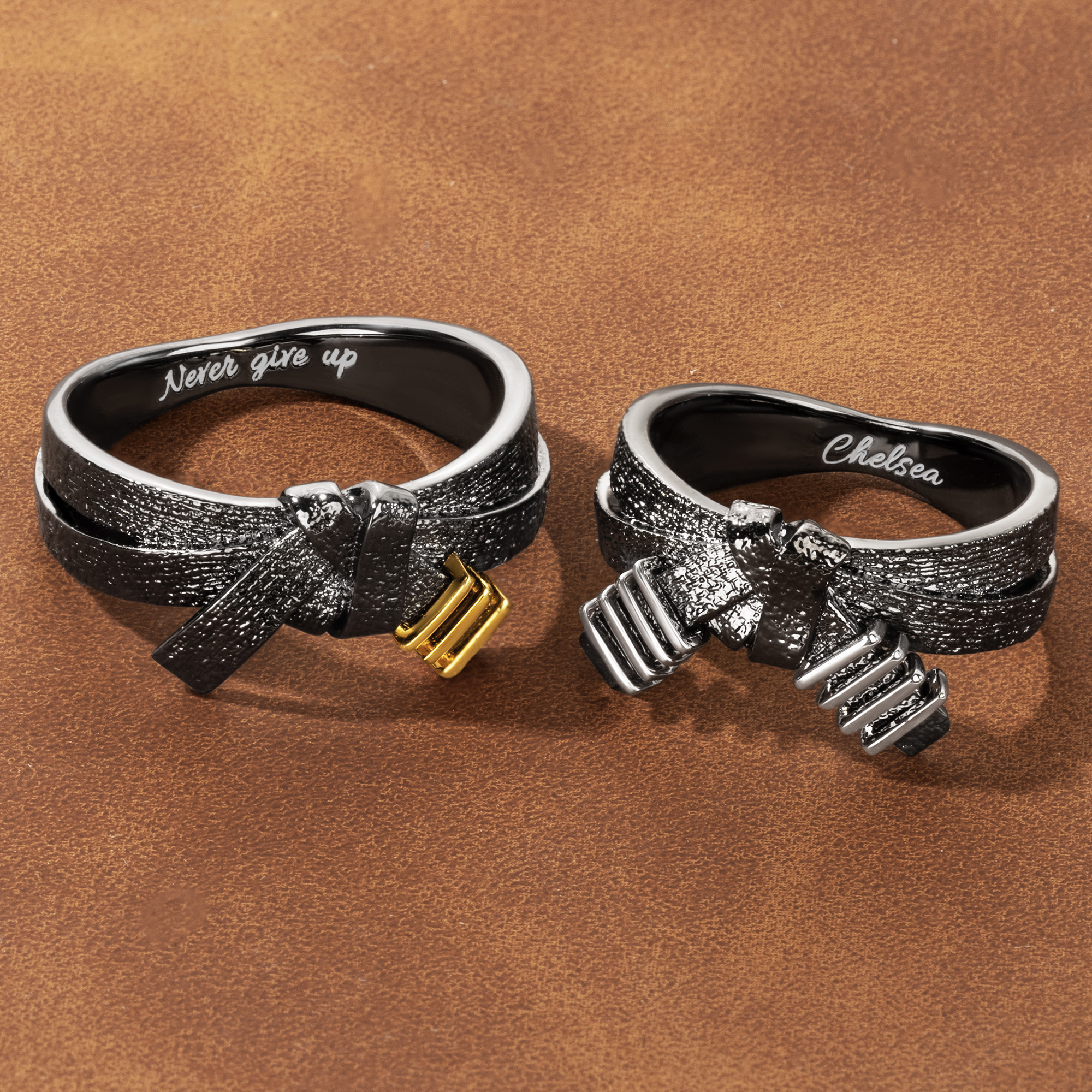 Personalizado Arte Marcial Cinturón Negro Dan Rayas Anillo con texto grabado Equipo Belt Raking Regalo para Karate BJJ Taekwondo Aikido Lover