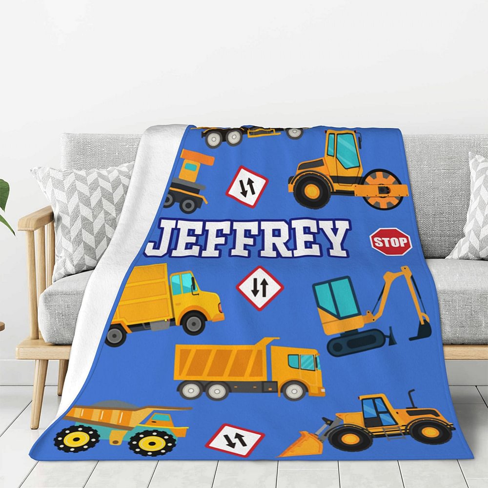 Coperta personalizzata con nome per camion da costruzione, letto, divano, divano decorato, regalo di compleanno per bambini.