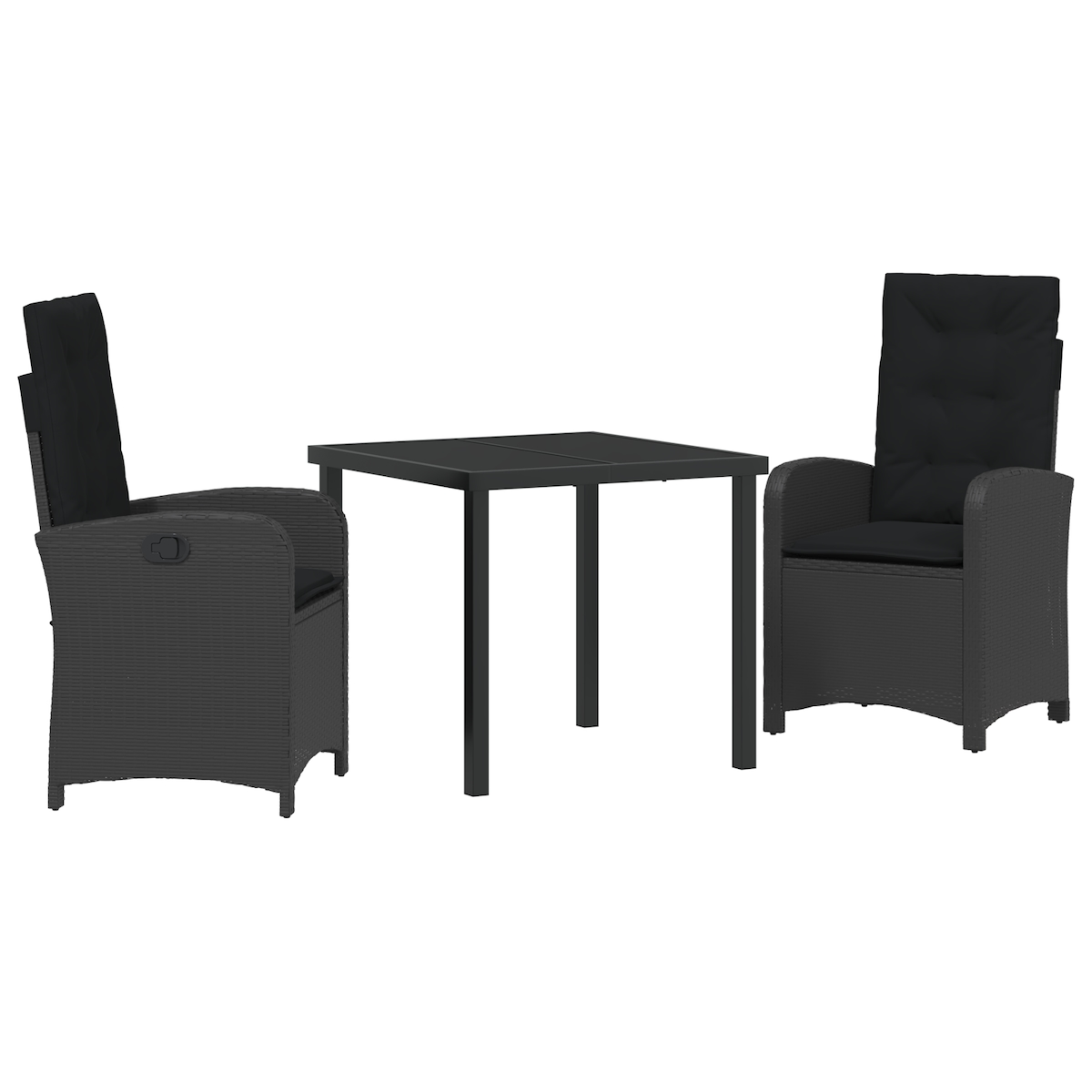 vidaXL 3-teiliges Garten-Dining-Set mit Kissen Schwarz Poly-Rattan