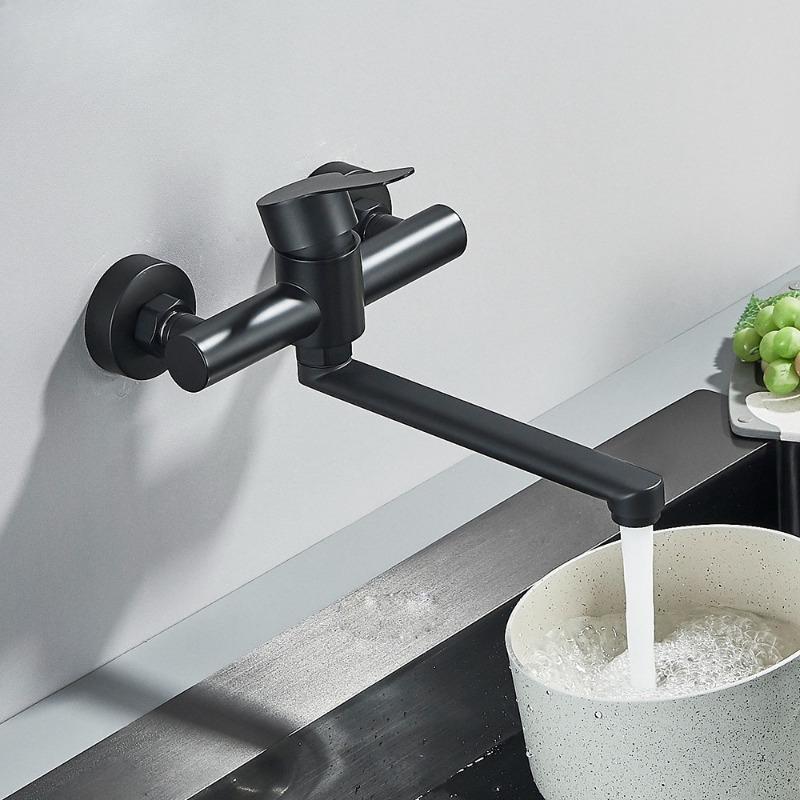 Schwarze Wandmontierte Küchenarmatur 360° Drehbarer Auslauf Einhebel Badezimmer Küchen Mischbatterie Gebürstetes Nickel Warm Kalt Wasserhahn schwarz