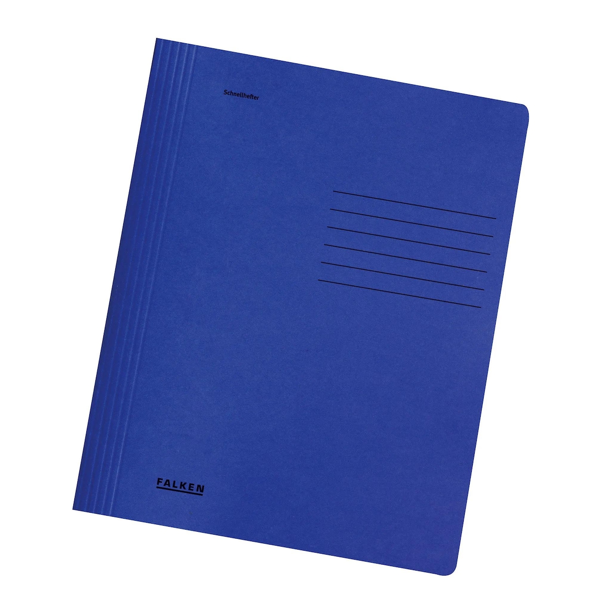 Falken 26001264 Schnellhefter Karton, gebrauchsfertig gefaltet, für DIN A4, 240g/m2 Manila-RC-Krt., intensivfarben, 10er Poly - Blau
