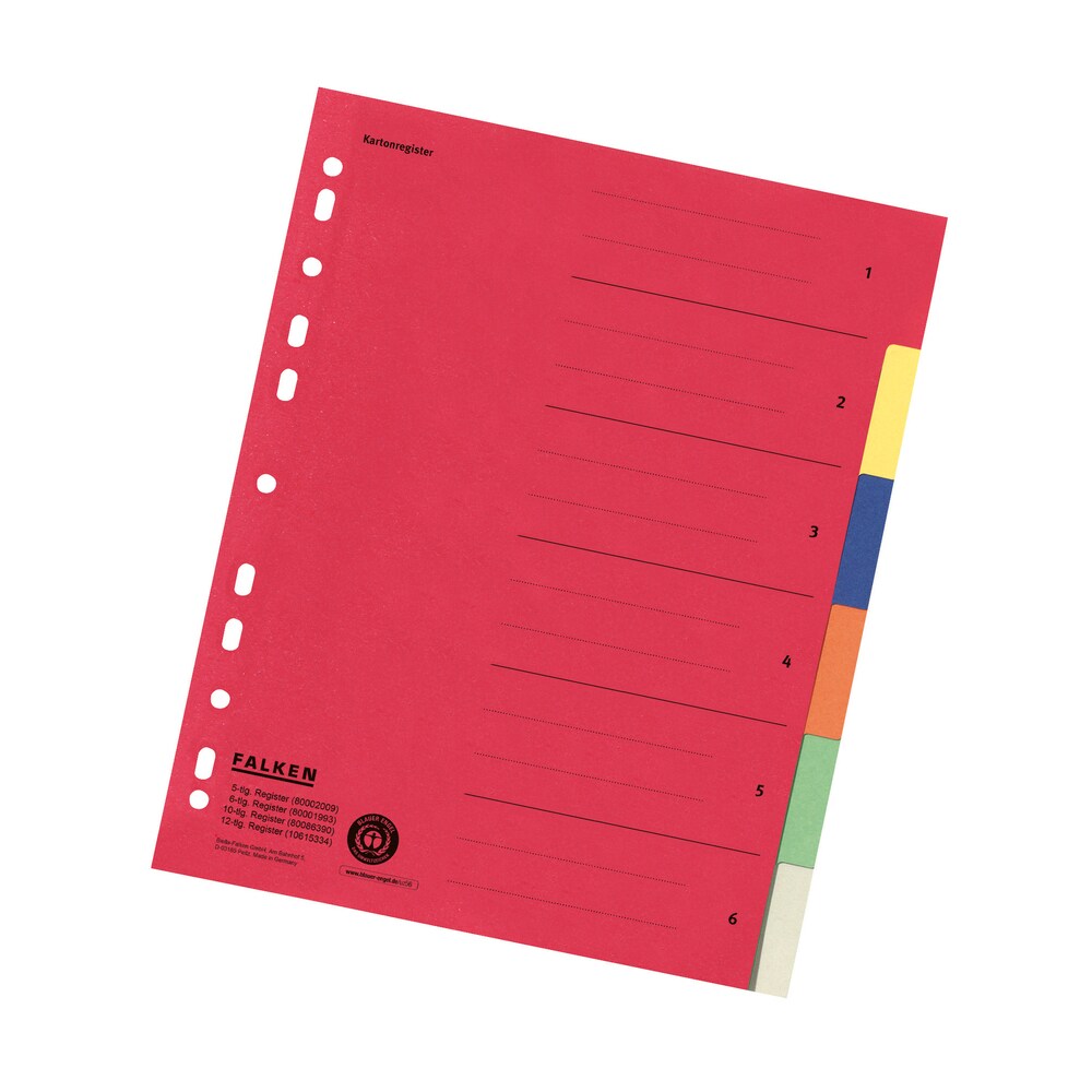 Falken, Register Karton, 24,0 x 29,7cm, 230g/m2 Manila-RC-Karton, 6-teilig