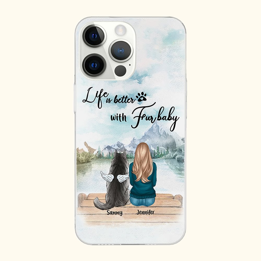 Coque de téléphone personnalisée Life Is Better With Fur Baby Seagull Cadeau d'anniversaire pour les amoureux des chiens