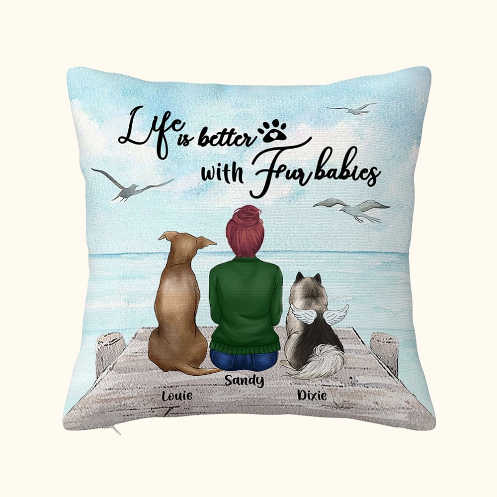 Housse de coussin personnalisée Life Is Better With Fur Babies Cadeau d'anniversaire et de Noël pour les amoureux des chiens