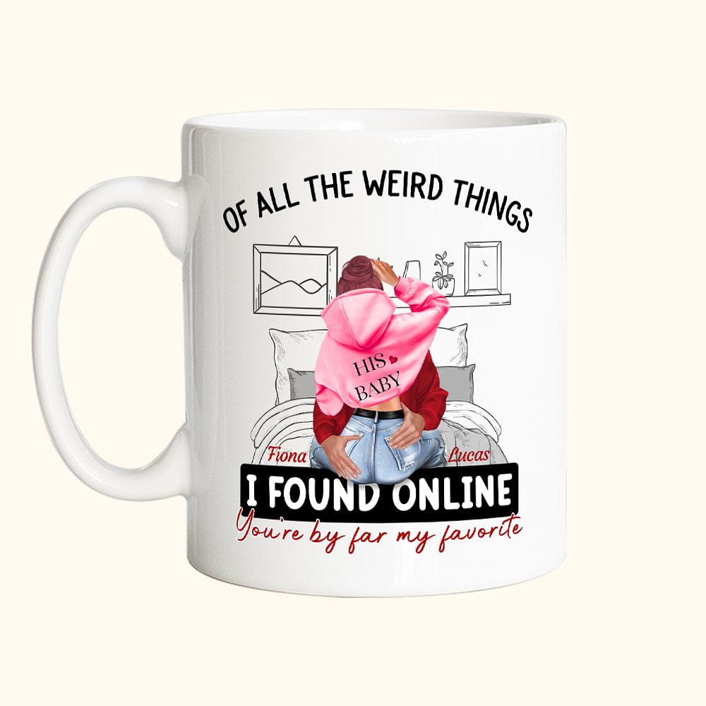 Tasse en céramique personnalisée avec nom De toutes les choses bizarres que j'ai trouvées en ligne Tu es de loin mon cadeau de Saint-Valentin préféré