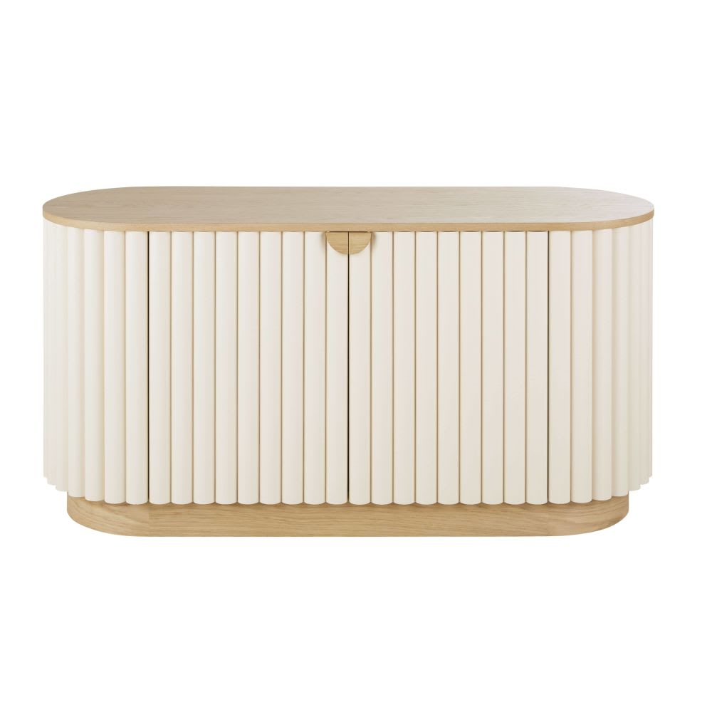 Buffet 2 portes coulissantes façades effet bois rainuré L140 cm
