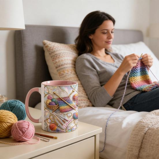 Yousheng Knitting And Sewing Tools Mug 11oz Personalized Coffee Mug with Sewing Machine & Yarn Prints Sewing Gift for Women pink