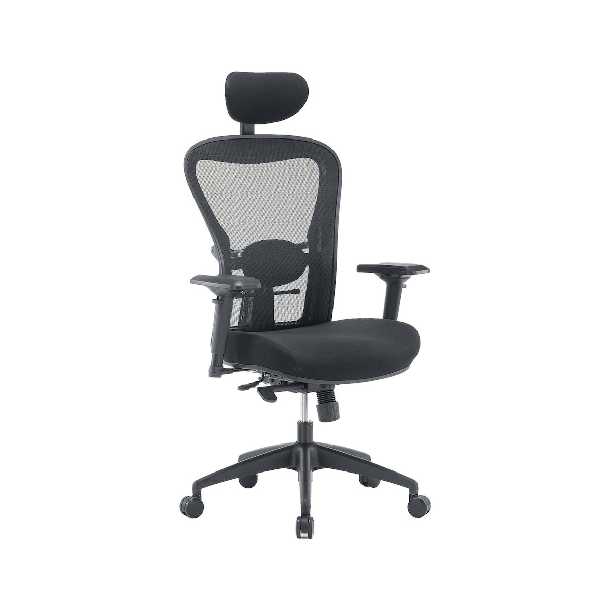 Dmora Bürostuhl Bunbury, Chefsessel mit Armlehnen, Ergonomischer Bürostuhl, Schwarz, 62x54h92/102 cm