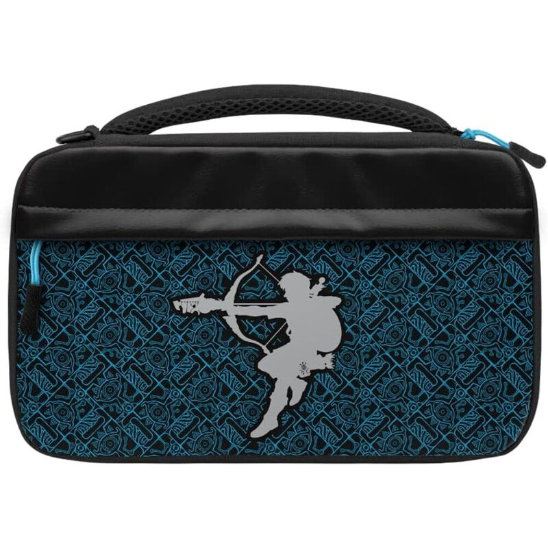 PDP Étui Rigide Travel Case Nintendo Switch, Switch Lite et Switch OLED - Rangement 14 Jeux - Pochette Velcro Ajustable - Sangle de Retrait - Licence Officielle The Legend of Zelda - Motif Link Hyrule - Bleu