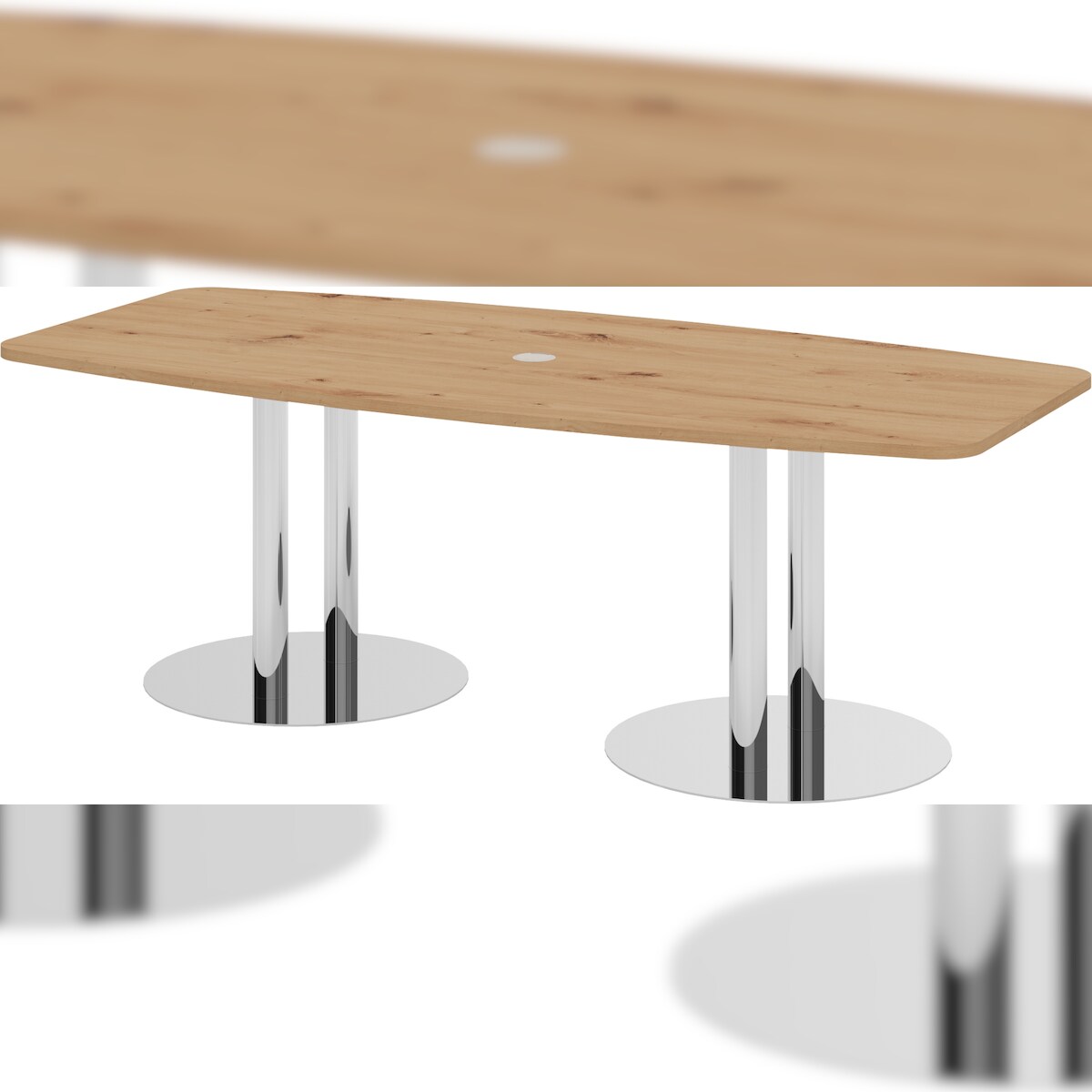 bümö Konferenztisch oval 220x103 cm großer Besprechungstisch in Asteiche, Besprechungstisch mit Chromsäulen, Meetingtisch für 8 Personen, XXL-Tisch