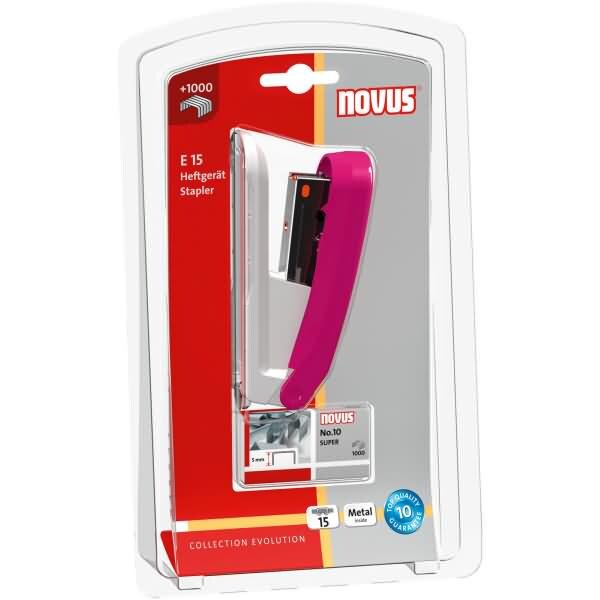 NOVUS Heftgerät E15 15 Blatt 37mm (Blister) pink