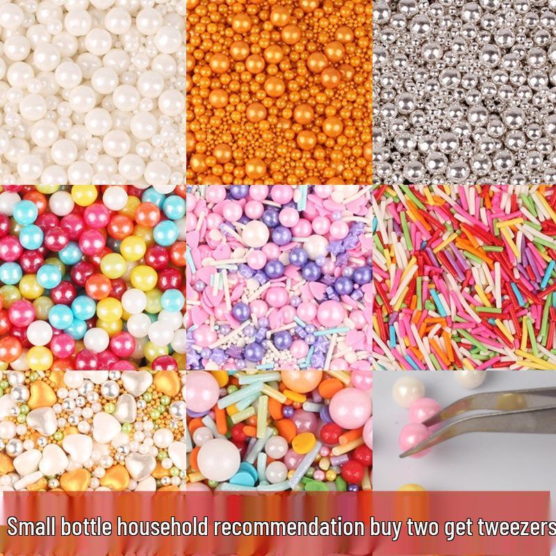 White, Gold & Silver Sugar Pearl Cake Decorations - Round Beads for Pastry, Ice Cream, and Baking - Mixed Colorful Needle Sugar Pearls.