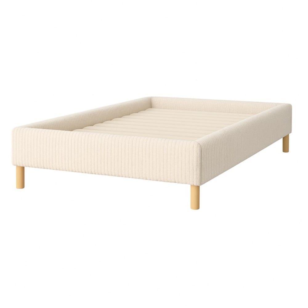 Letto in bouclé color sabbia con rete a doghe 200x200 cm