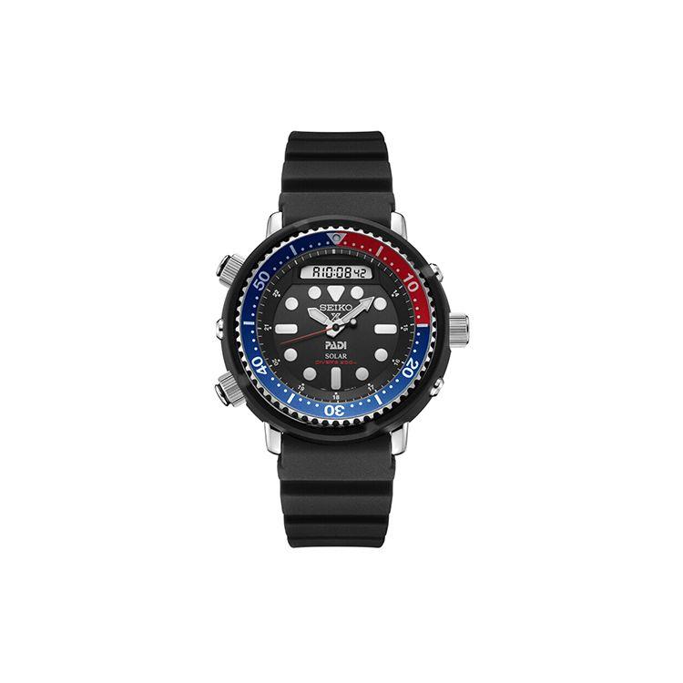 Seiko Solar Powered Diving Multifunction Dual Display Sports Limited Edition Solar Movement Silicone Strap Watch Men watches Black SNJ035P1