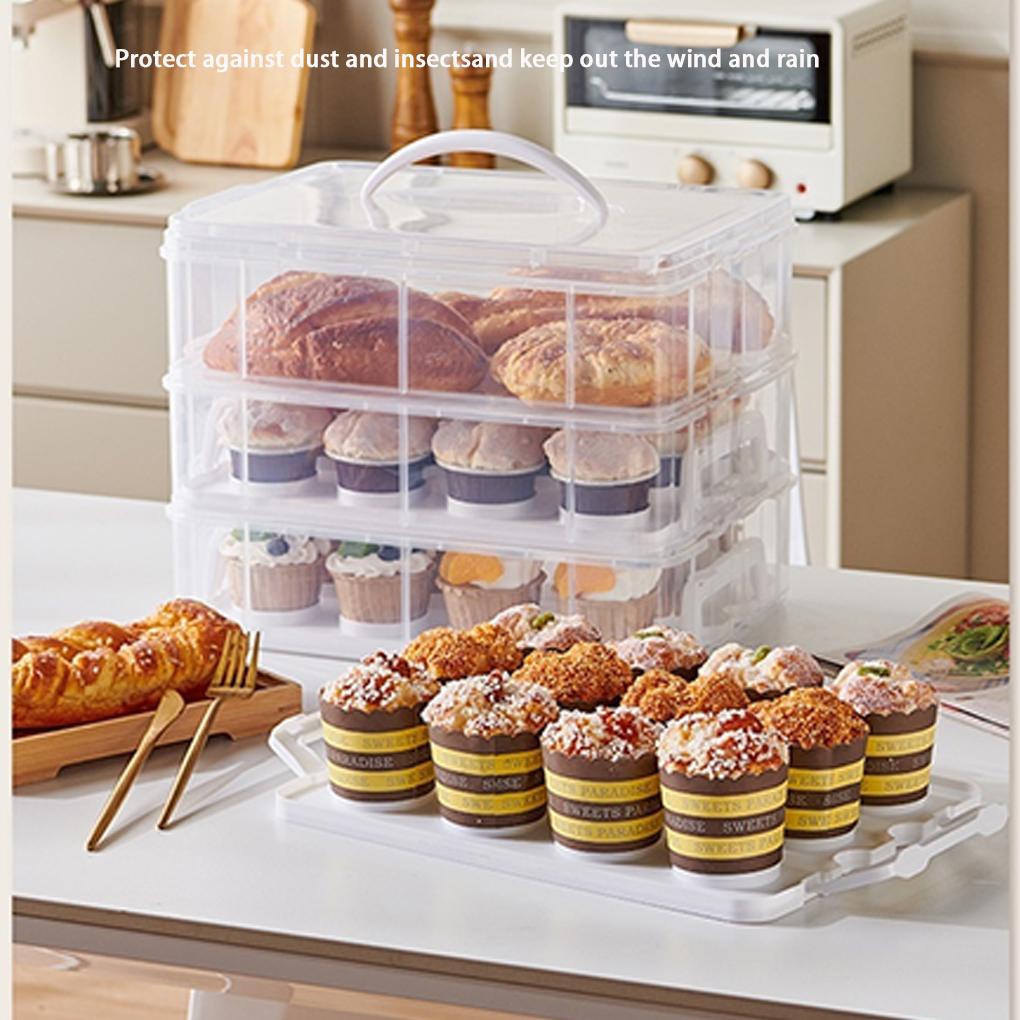 1/2 Tier Cupcake Carrier Transparent Rectangle Cupcake Storage Box with Lid and Handle 12/24 Grids Cupcake Containers Party