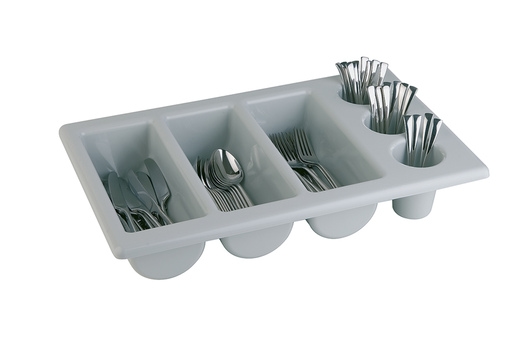 APS Besteckkasten, GN 1/1, Polypropylen, 53 x 32,5 cm, H: 10 cm, vier Kammern, grau