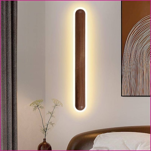 Lampada da parete a LED, applique da parete in legno massello da 60 cm, lampada da parete regolabile in stile nordico per comodino, lampada da parete rettangolare per soggiorno, camera da letto,
