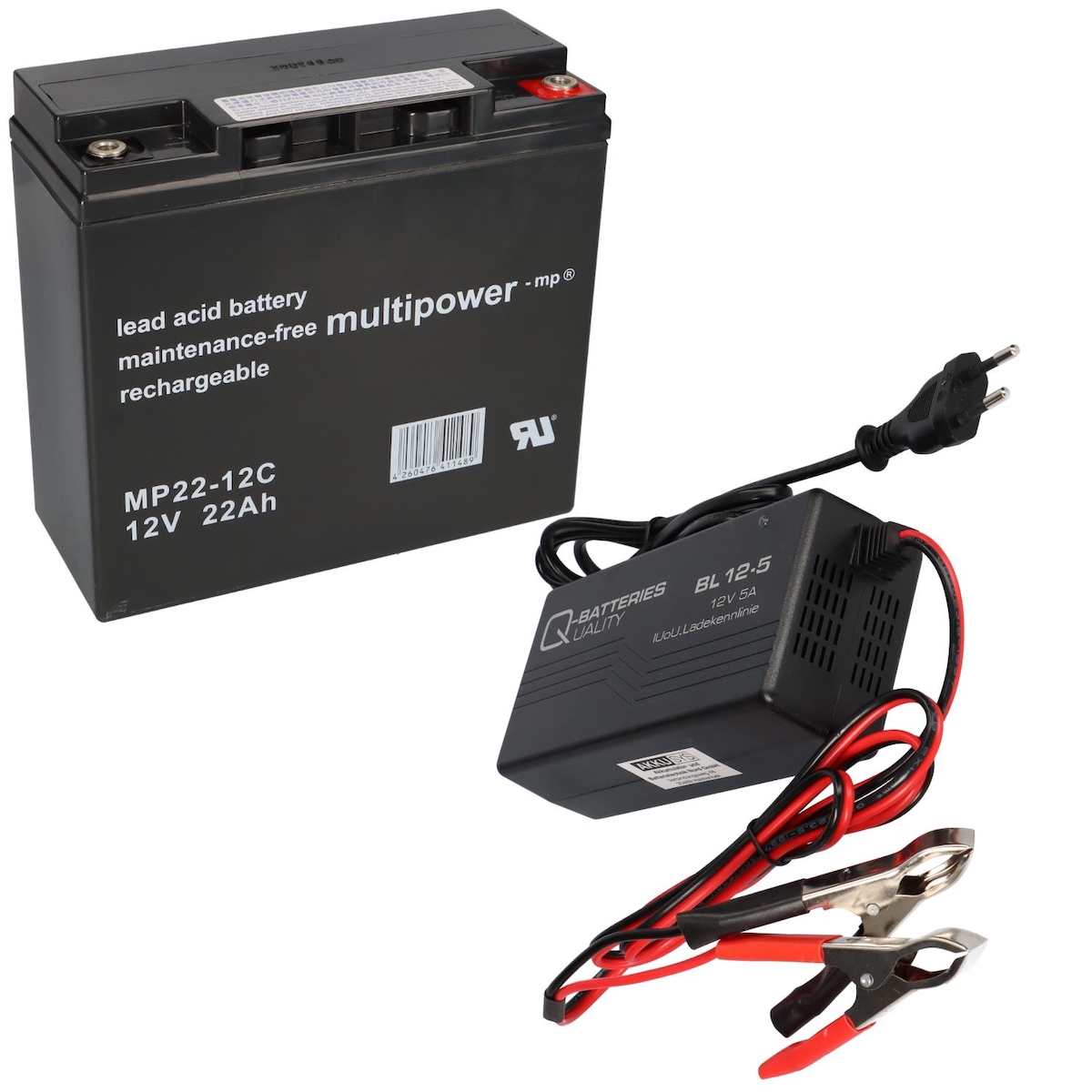Multipower Set Q-Batteries BL 12-5 Ladegerät + Blei-Akku MP22-12C Pb 12V 22Ah Zyklenfest