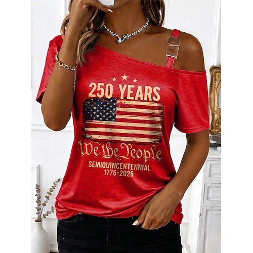 Giorno dell'Indipendenza Americana Per donna Maglietta Stampato Asimmetrico Grafico Bandiera Bandiera Americana Vintage Moda Elegante Manica Corta Monospalla Top Regolari Quotidiano Uscire Weekend