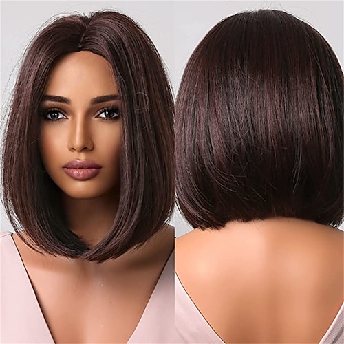 parrucche caschetto castano per donna biondo mette in risalto la parte centrale dei capelli sintetici corti e lisci