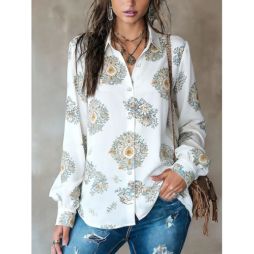 Per donna Camicia Bottoni Stampato Grafico Paisley Vintage Elegante Moderno Manica Lunga Colletto a Camicia Top Regolari Quotidiano Bianco Rosso Viola Arancione Estate Primavera