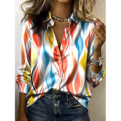 Per donna Camicia Bottoni Stampato Grafico Geometrico Attivo Quotidiano Elegante Manica Lunga Colletto a Camicia Top Regolari Quotidiano Ferie Arancione Primavera Autunno